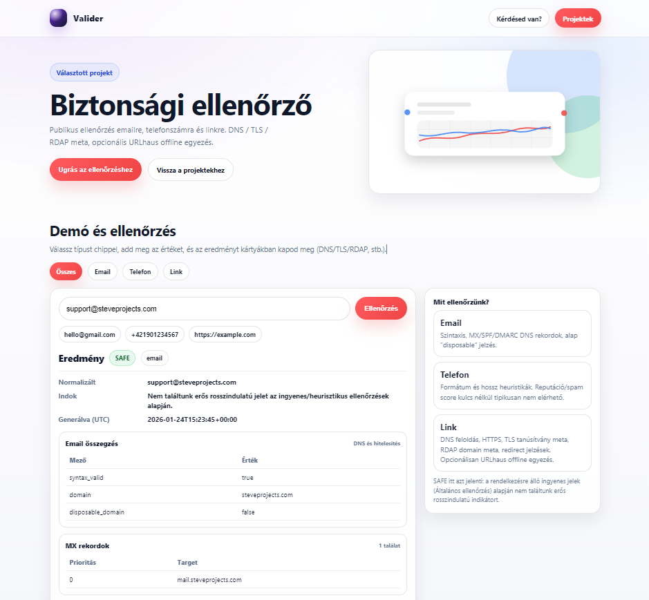 Valider - Minimalista caller info és link checker