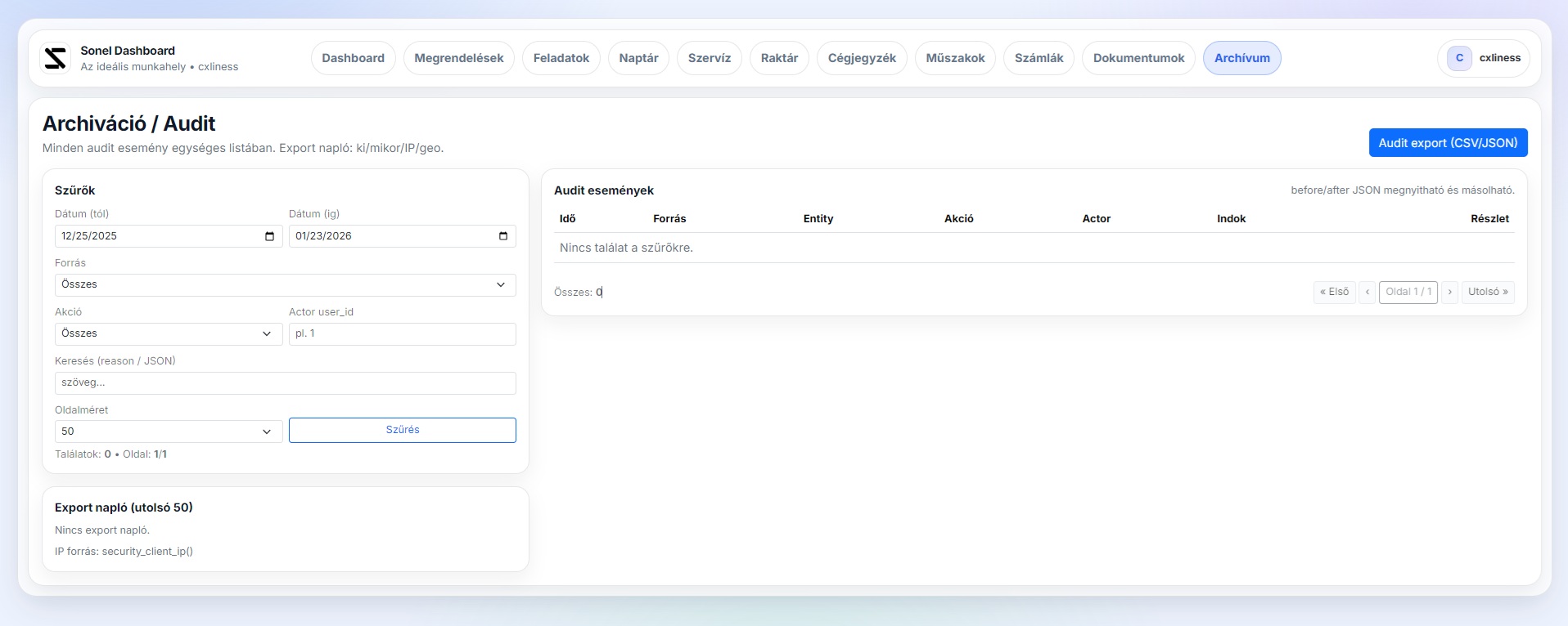 A SoneL egy bejelentkezéshez kötött, belső felület, amely egy helyen ad áttekintést a napi működésről és a legfontosabb mutatókról. Moduláris felépítésben kezeli a tipikus üzemi funkciókat (például feladatok, ticketek, szervíz, raktár, megrendelések), és gyors elérésekkel támogatja a gyakori műveleteket. Jogosultságkezeléssel szerepkörönként szabályozza, ki mit láthat és érhet el, így biztonságosan skálázható több csapat vagy munkakör esetén is. A rendszer célja egy átlátható, hatékony backoffice környezet biztosítása, ahol a folyamatok, státuszok és határidők naprakészen követhetők.